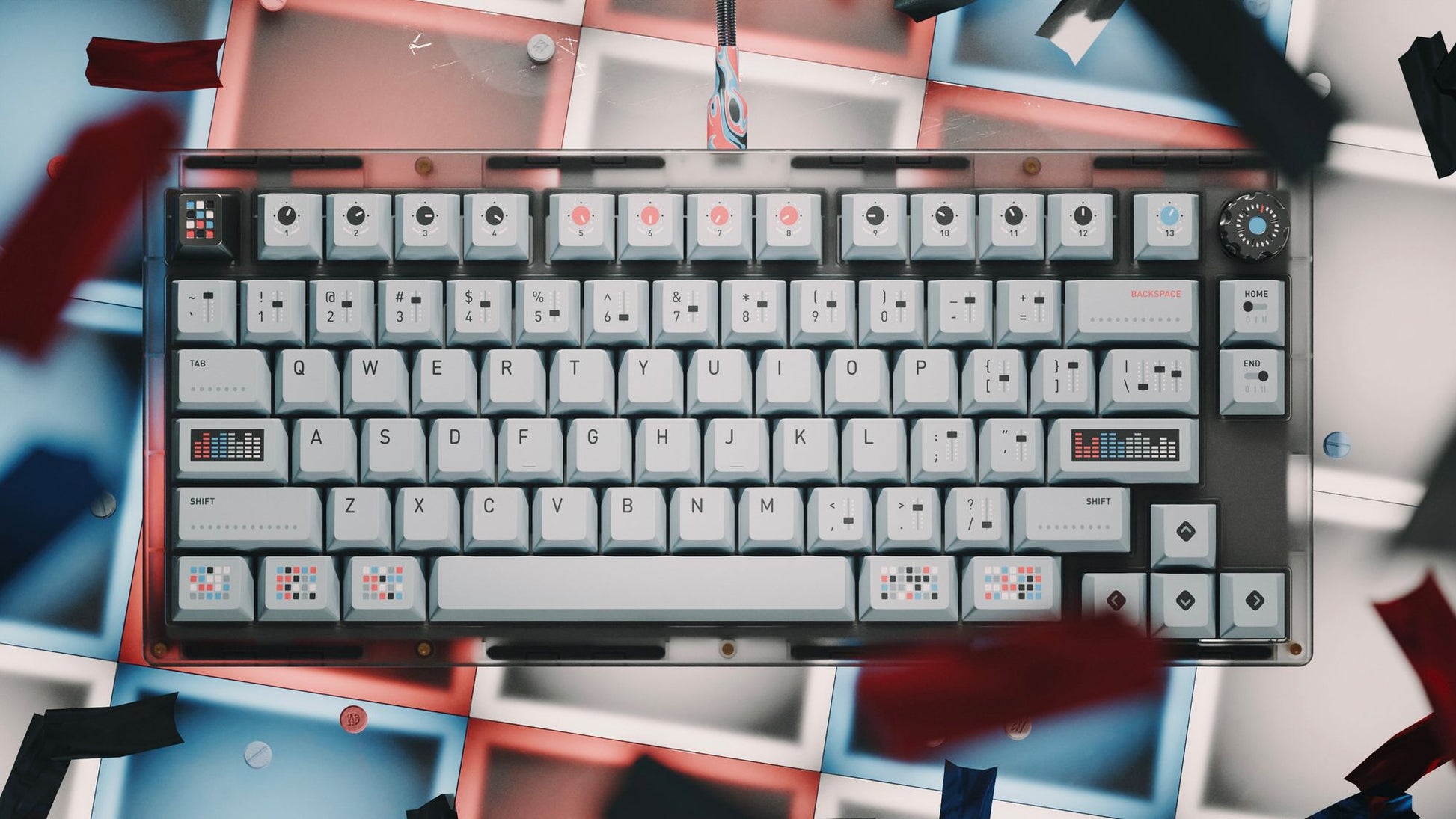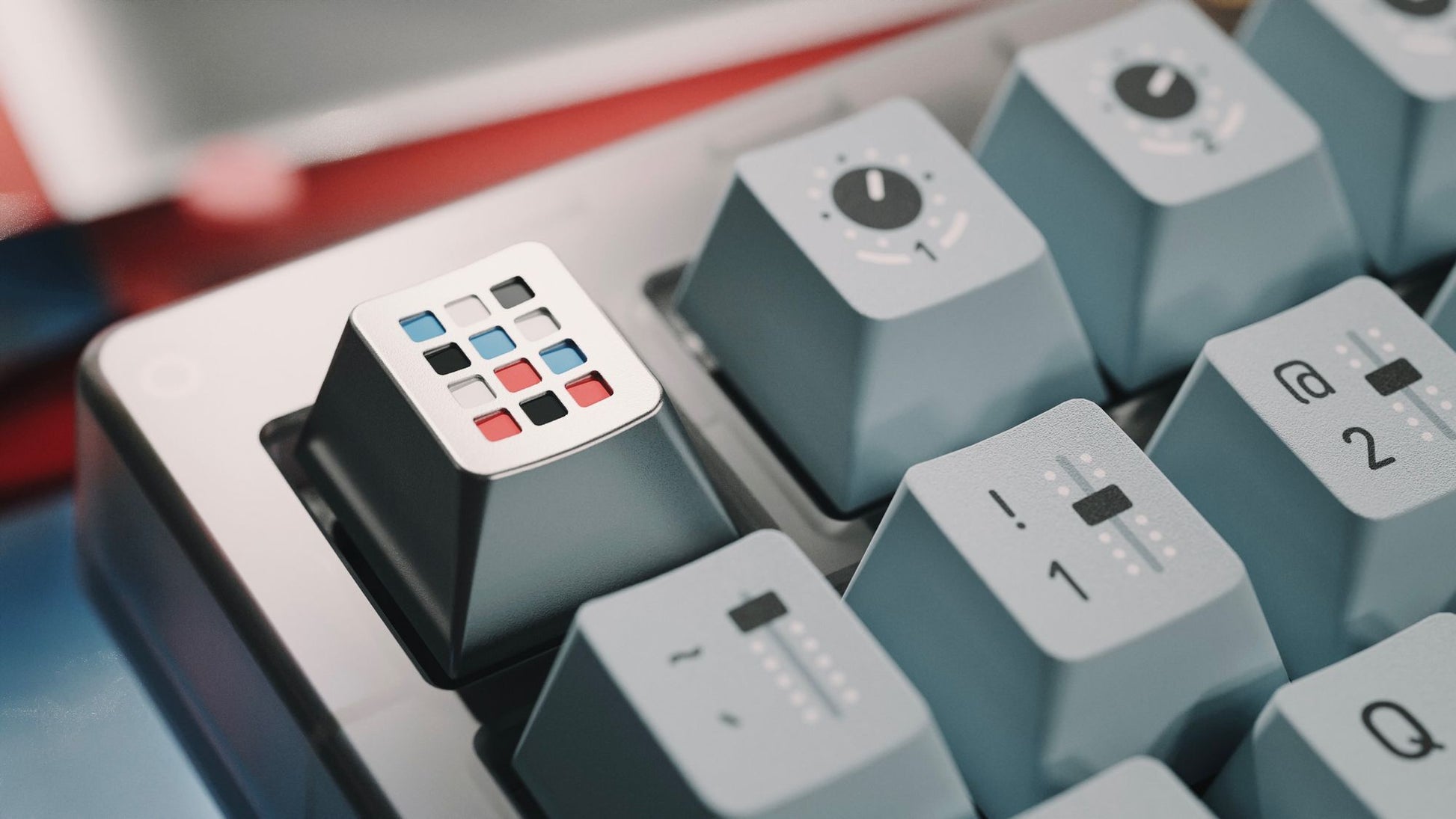 MV Synth is a fun and affordable set of keycaps inspired by synthesizers and all their lovely knobs, sliders and pads. Type a tune!